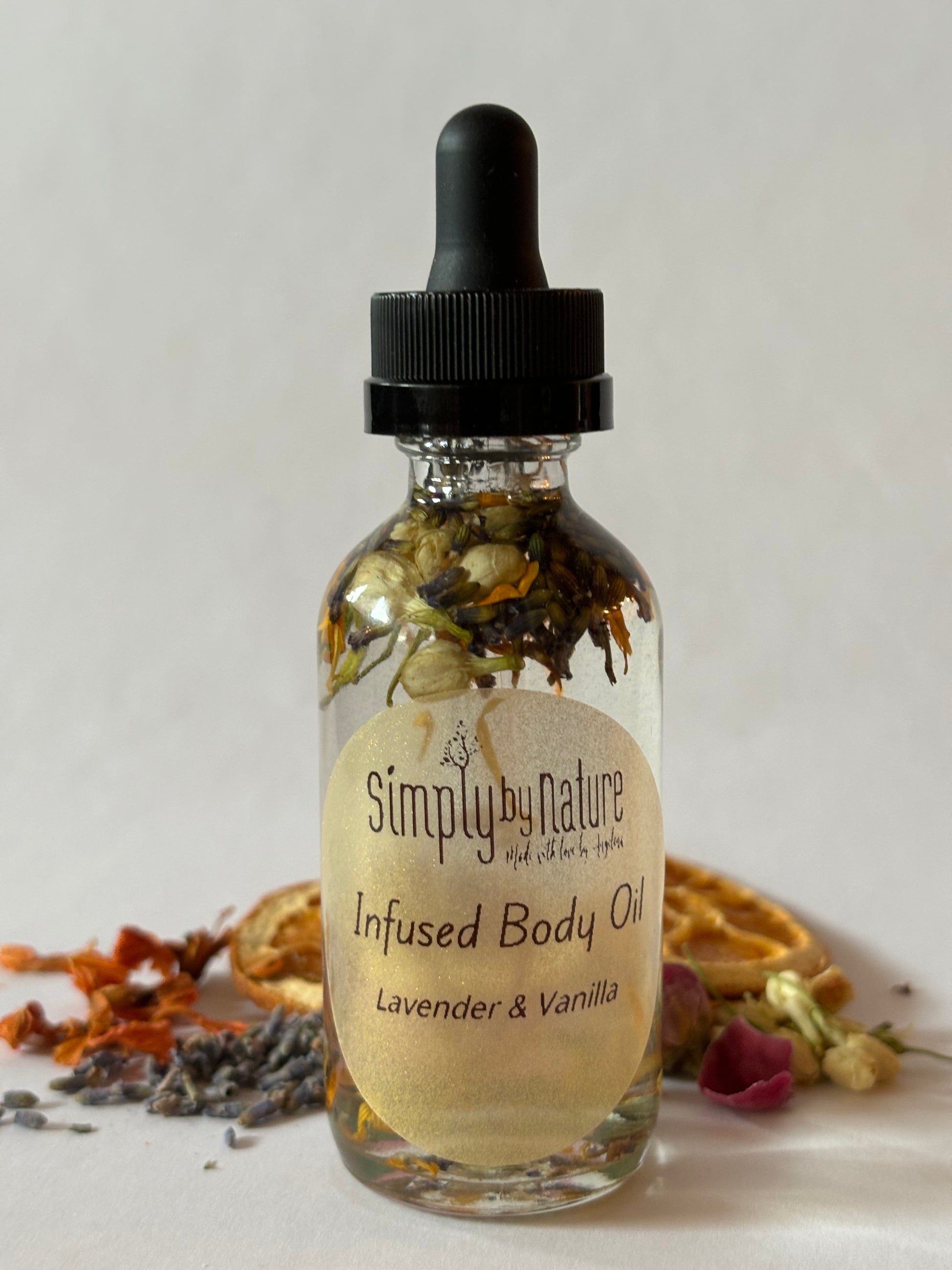 2oz Lavender & Vanilla Infused Botanical MCT Body Oil - Hydrating & Massage Oil