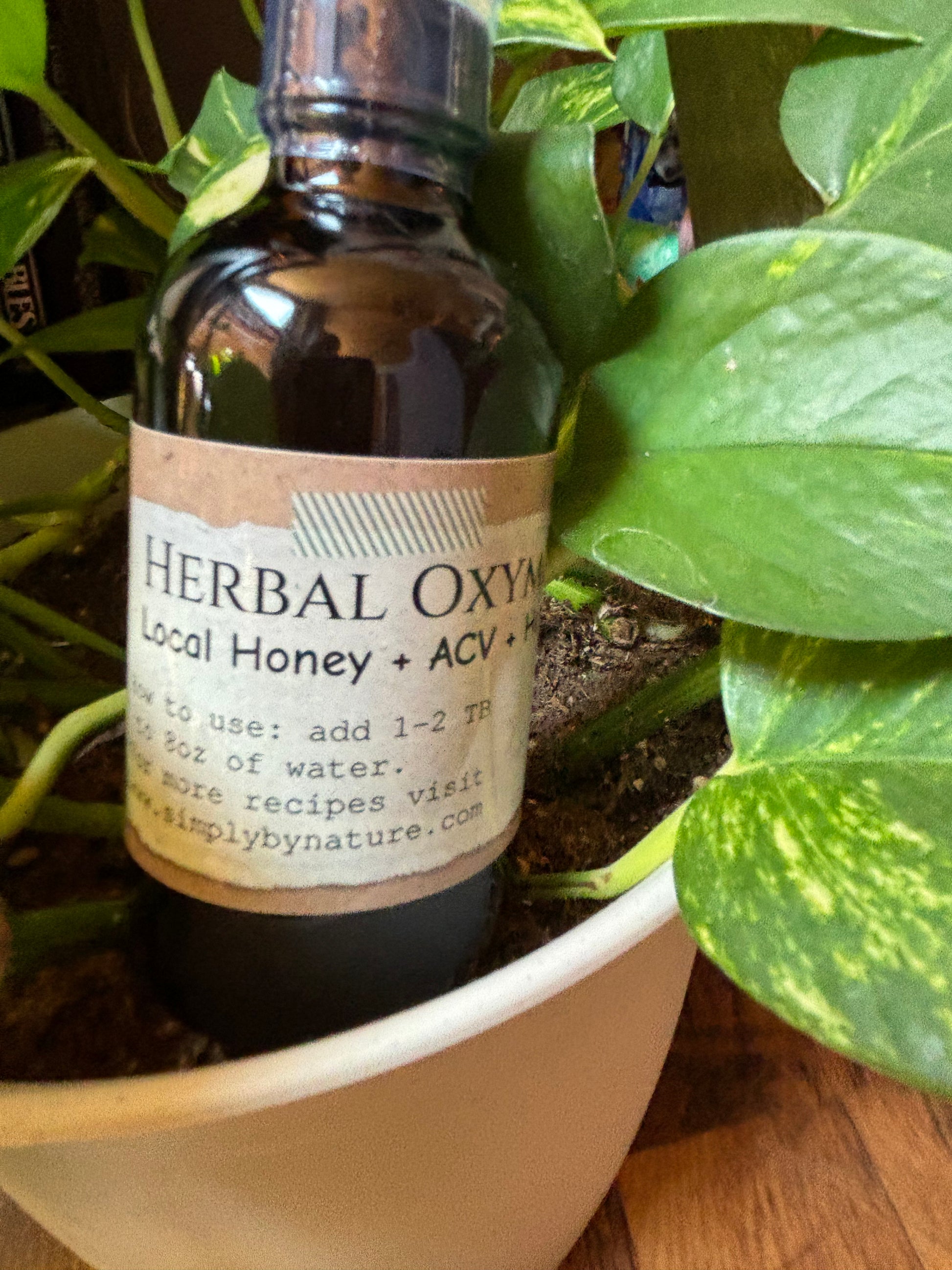 Oxymel is used to boost the immune systems in the cold & flu season of the winter months. Oxymel means "acid and honey" and is indicative of its two main ingredients that are used to make the infusion: honey and apple cider vinegar.