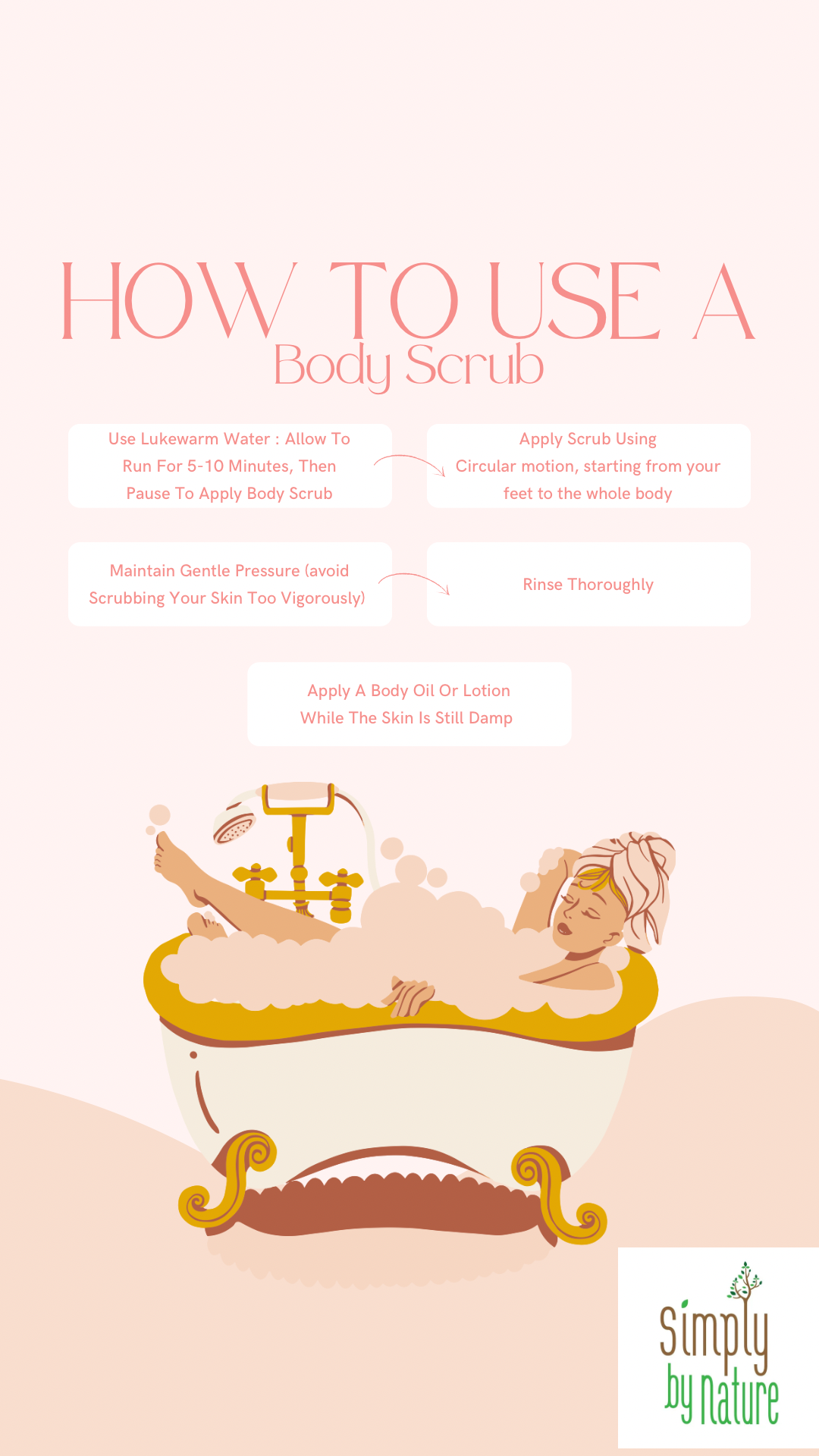 How to use: apply the scrub in a circular motion, all over the body, rinse with warm water. Best if done daily.
